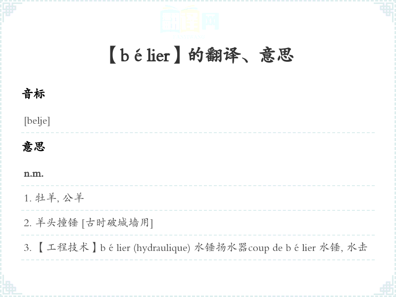 【工程技术】bélier (hydraulique) 水锤扬水器coup de bélier 水锤, 水击