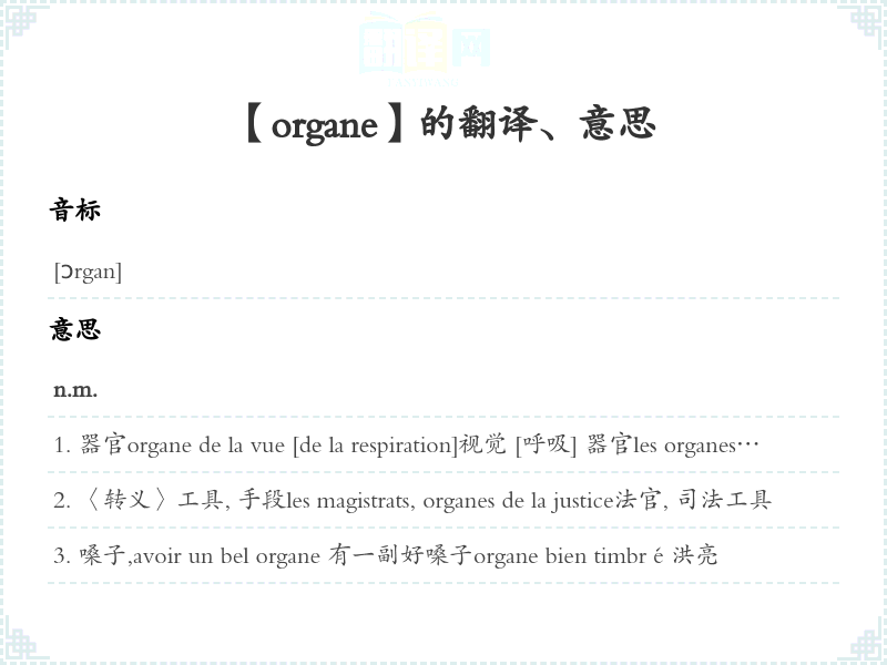 嗓子,avoir un bel organe 有一副好嗓子organe bien timbré洪亮