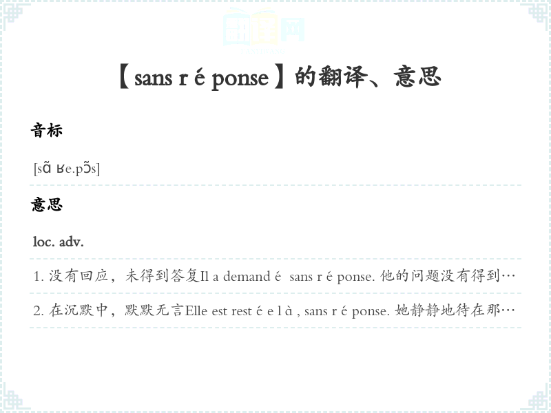 【sans réponse】是什么意思、字义解释