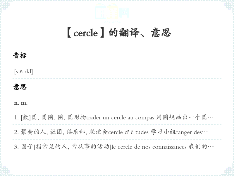 【cercle】 词根:、 联想:、 近义词: 联想词