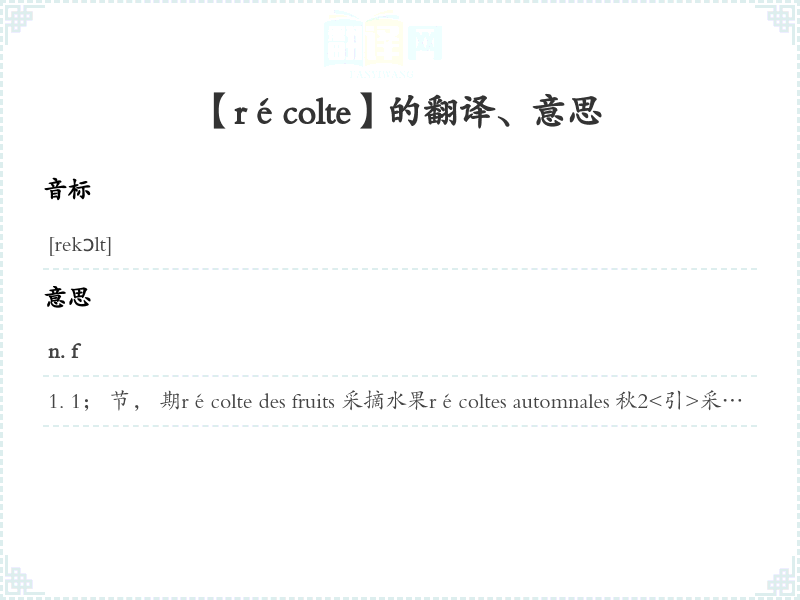 【récolte】是什么意思、字义解释
