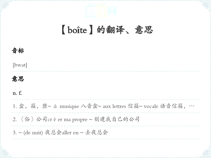 【boîte】是什么意思、字义解释