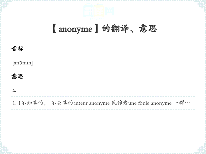 【anonyme】是什么意思、字义解释