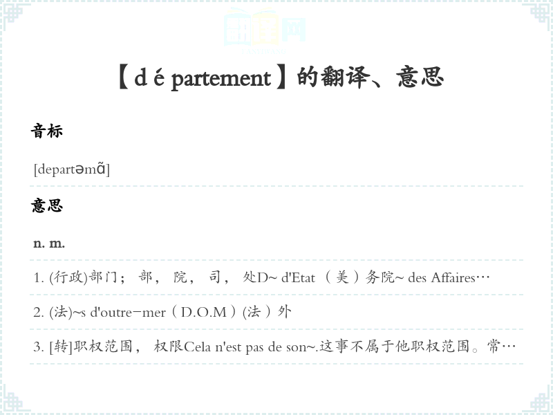 【département】是什么意思、字义解释
