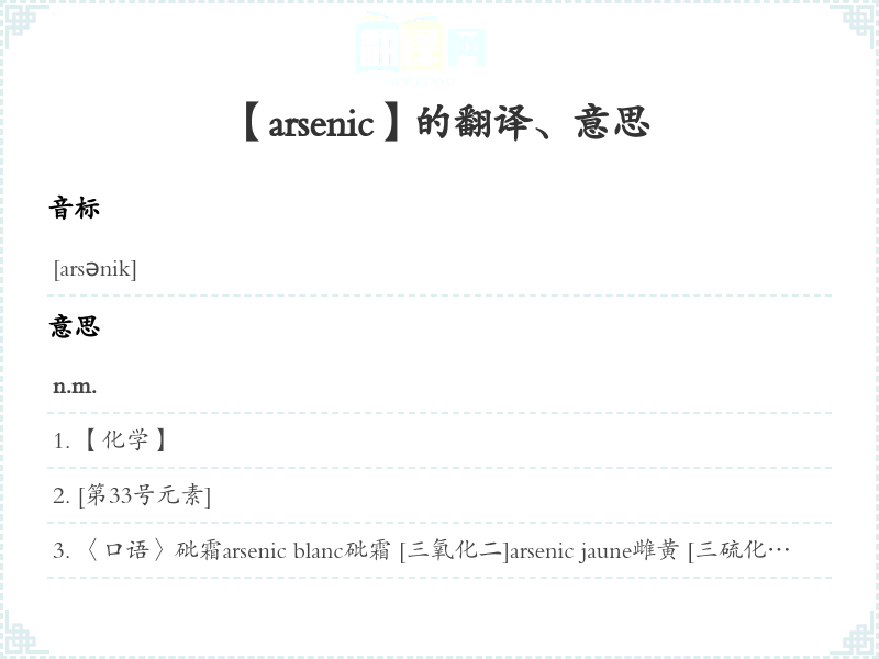 【arsenic】是什么意思、字义解释