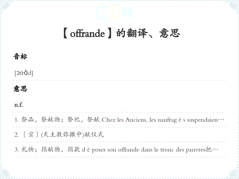 【offrande】是什么意思、字义解释