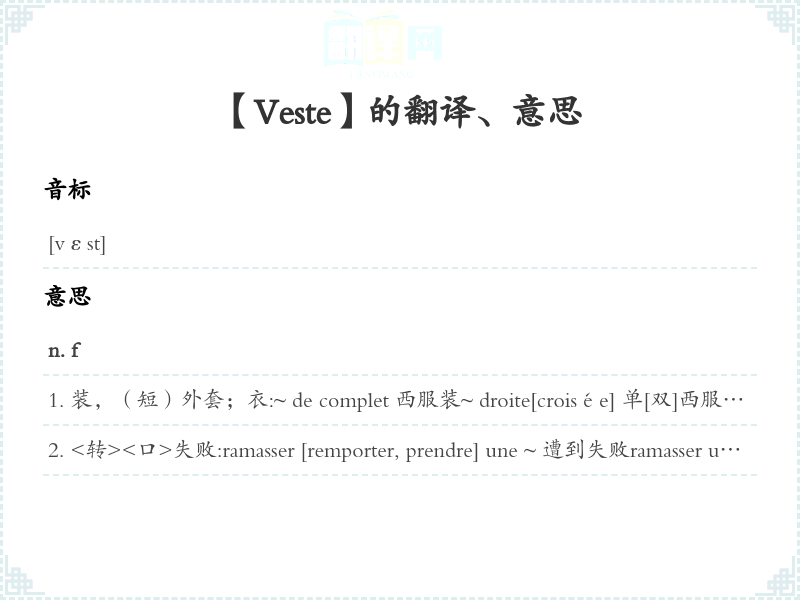 【Veste】是什么意思、字义解释