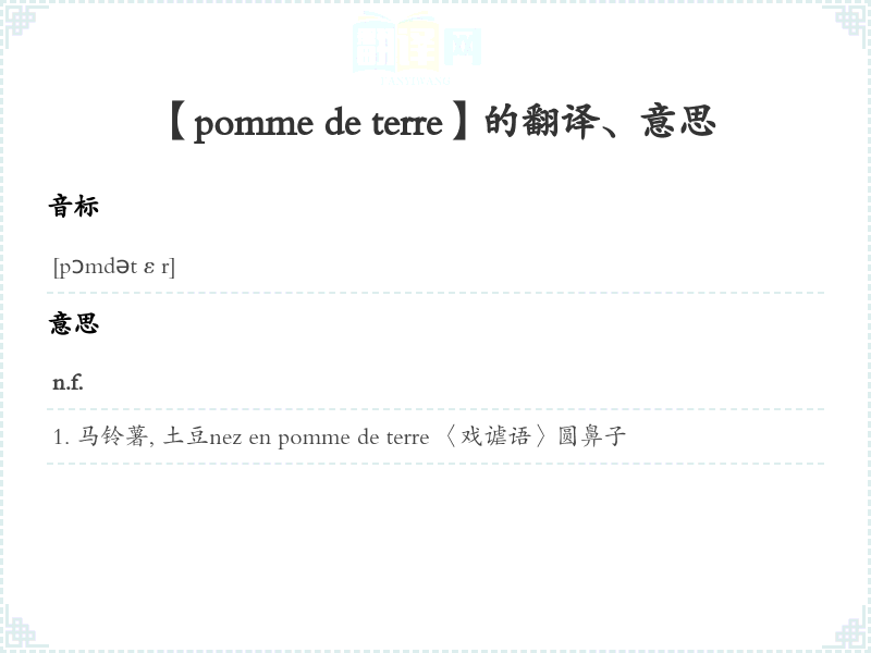 【pomme de terre】是什么意思、字义解释