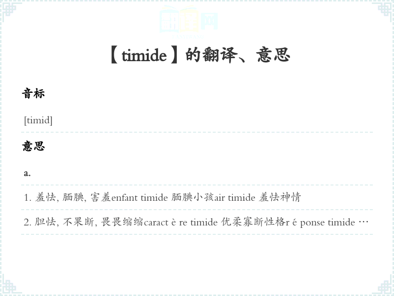 【timide】是什么意思、字义解释
