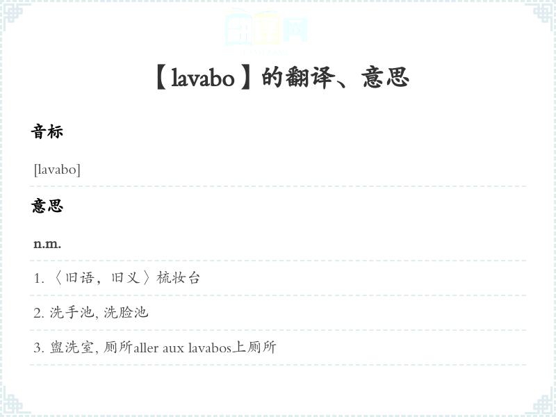 【宗教】(弥撒中的)洗手礼;洗手经;洗手巾;洗手盆