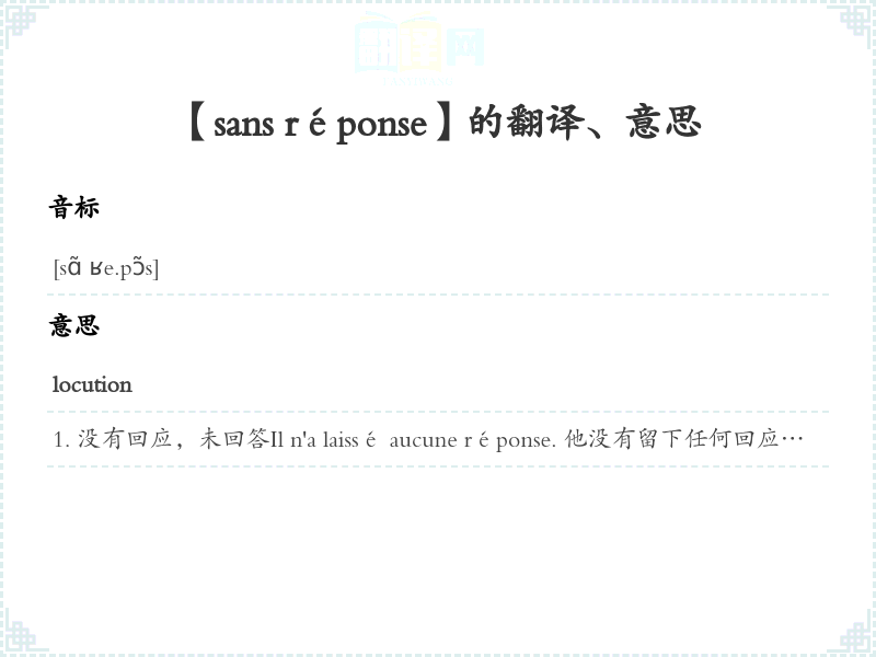 【sans réponse】是什么意思、字义解释