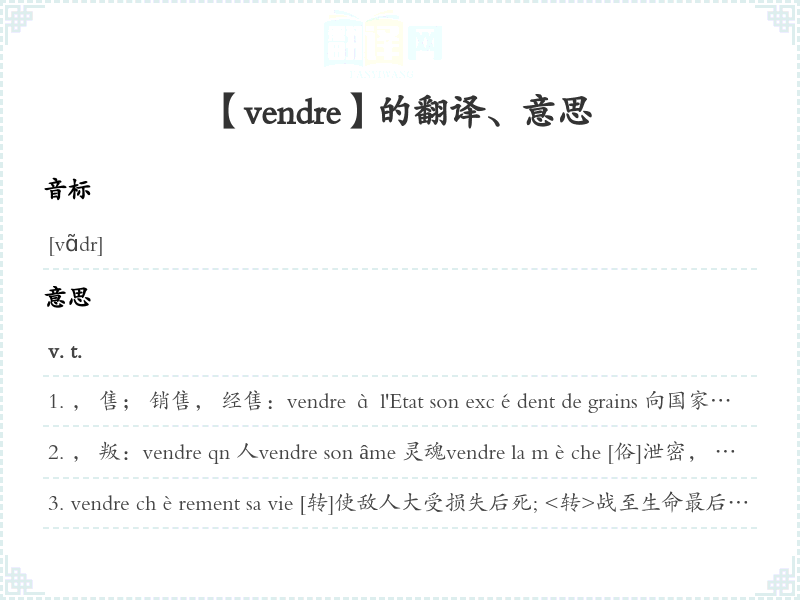【vendre】是什么意思、字义解释