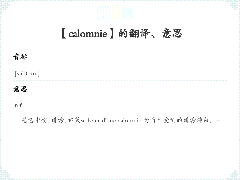 【calomnie】 联想:、 近义词:、 反义词: 联想词