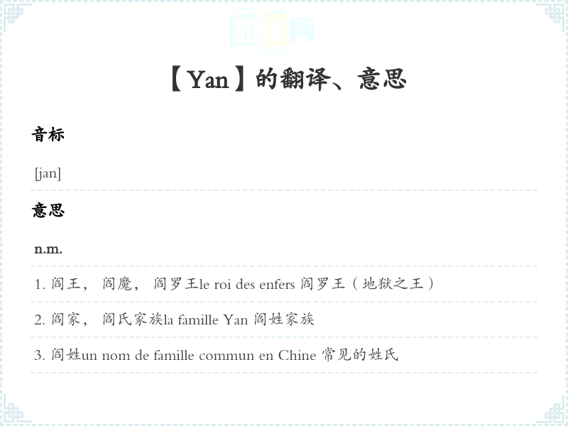 【Yan】是什么意思、字义解释