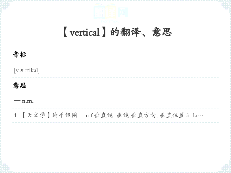【vertical】 近义词:、 反义词: 联想词