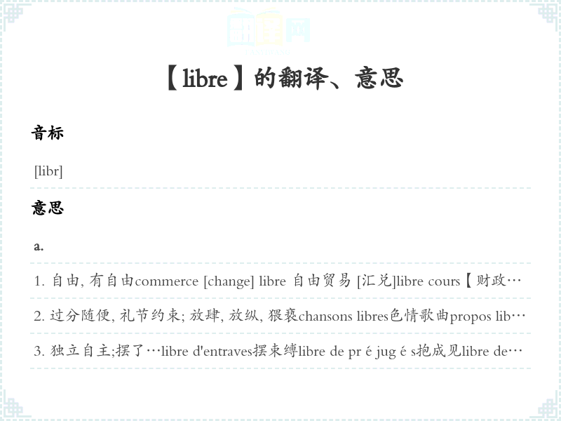 【libre】是什么意思、字义解释