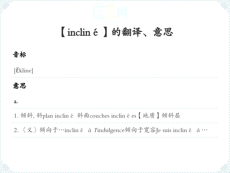 【incliné】是什么意思、字义解释