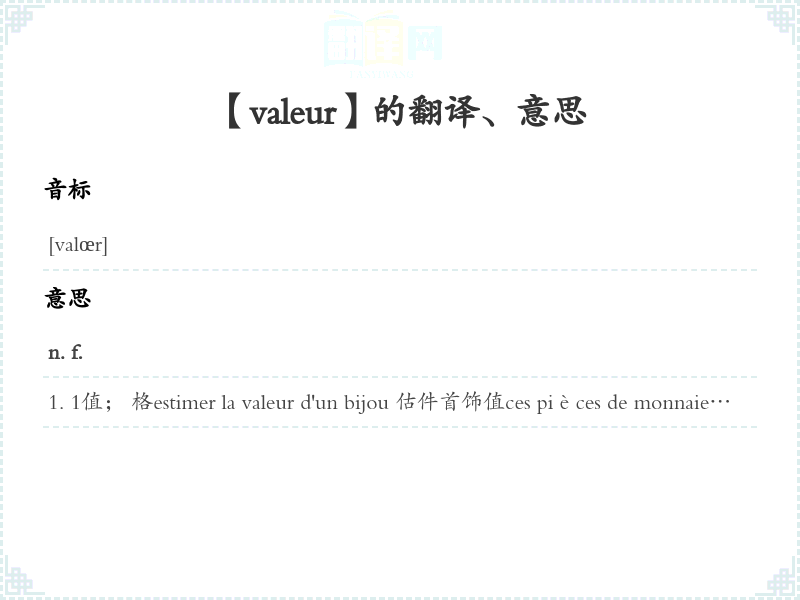 【valeur】是什么意思、字义解释