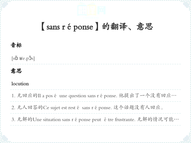 【sans réponse】是什么意思、字义解释