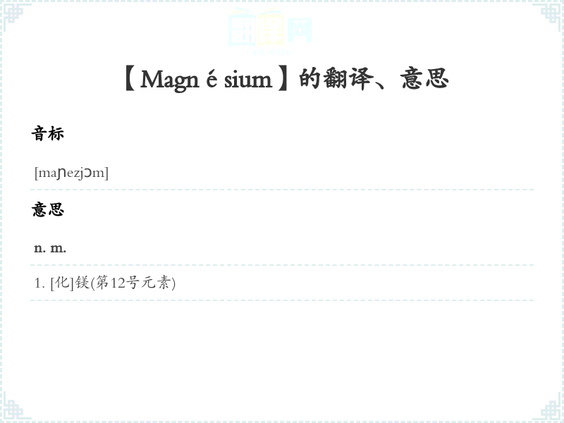 【Magnésium】是什么意思、字义解释