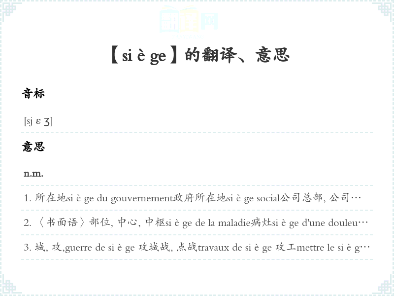 【siège】是什么意思、字义解释