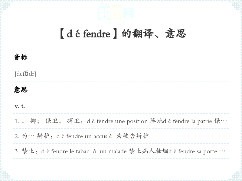 【défendre】是什么意思、字义解释