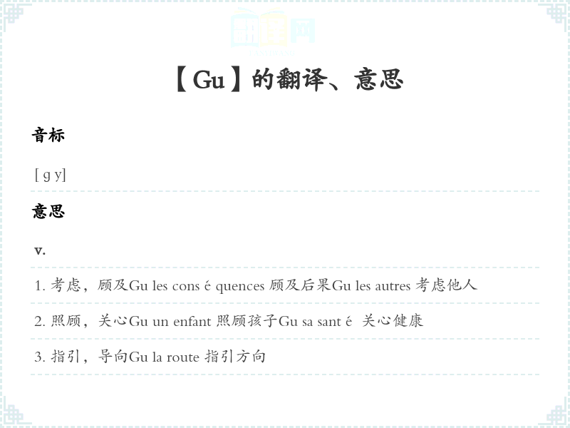 照顾,关心Gu un enfant 照顾孩子Gu sa santé 关心健康