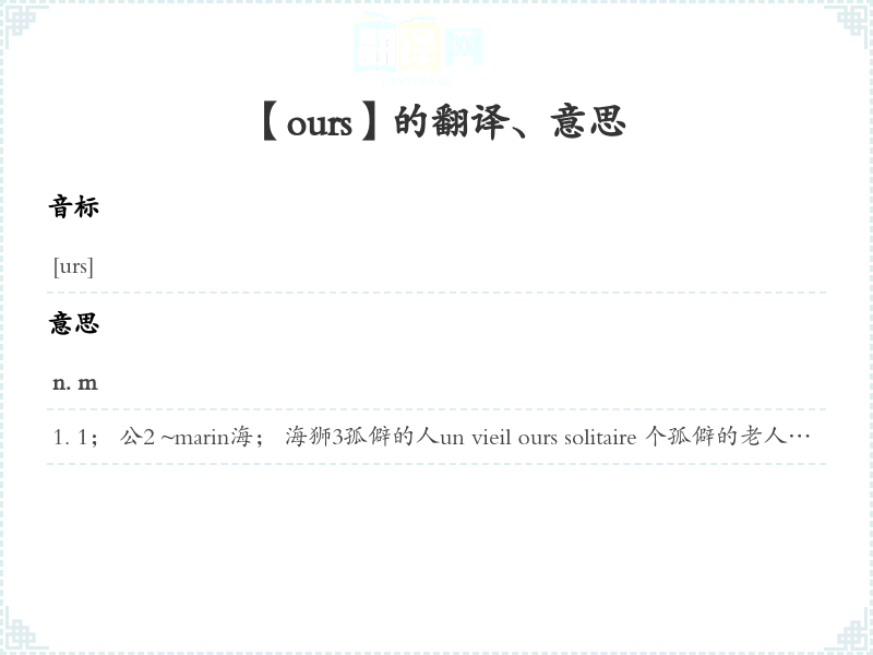 【ours】 联想:、 近义词:、 反义词: 联想词