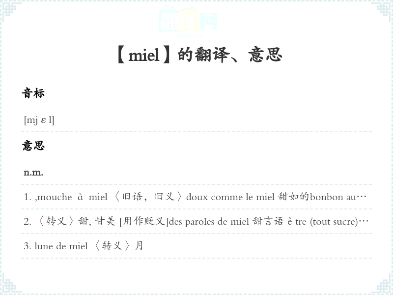 【miel】是什么意思、字义解释