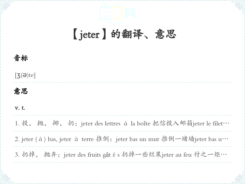 【jeter】 用法:、 近义词、 反义词、 同音、近音词 联想词