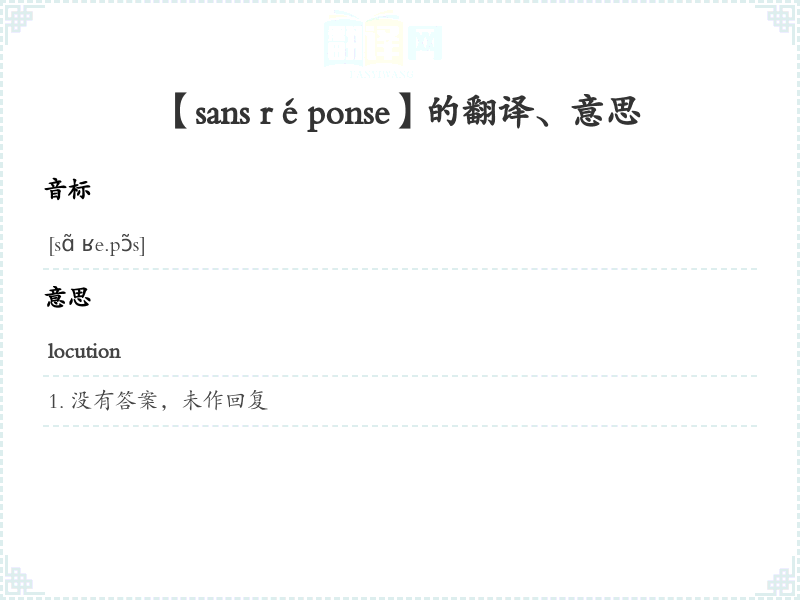 【sans réponse】是什么意思、字义解释