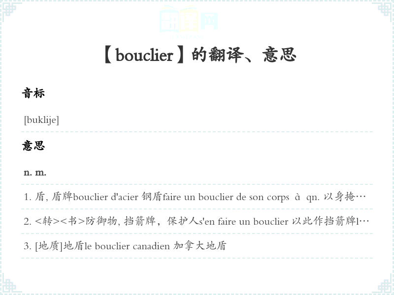 【bouclier】是什么意思、字义解释