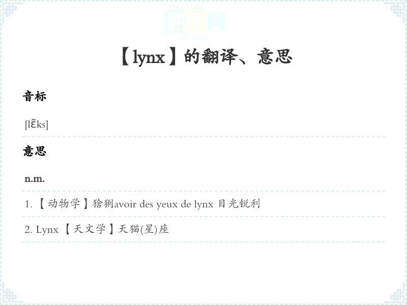 【动物学】猞猁avoir des yeux de lynx 目光锐利