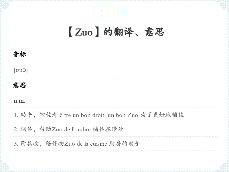 助手,辅佐者être un bon droit, un bon Zuo 为了更好地辅佐