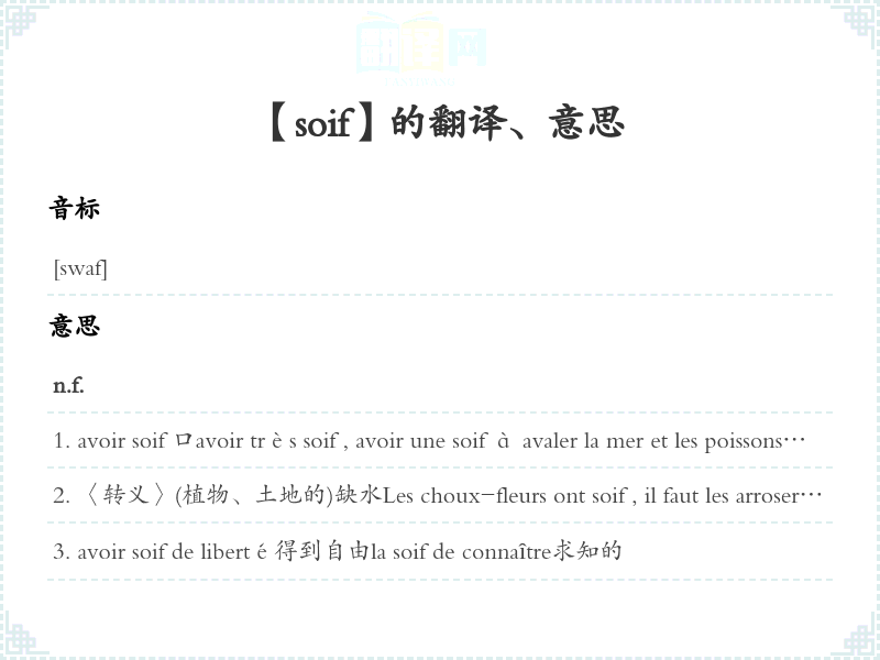 【soif】是什么意思、字义解释