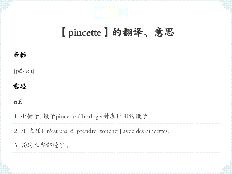 小钳子, 镊子pincette d'horloger钟表匠用的镊子