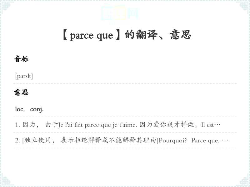 【parce que】是什么意思、字义解释