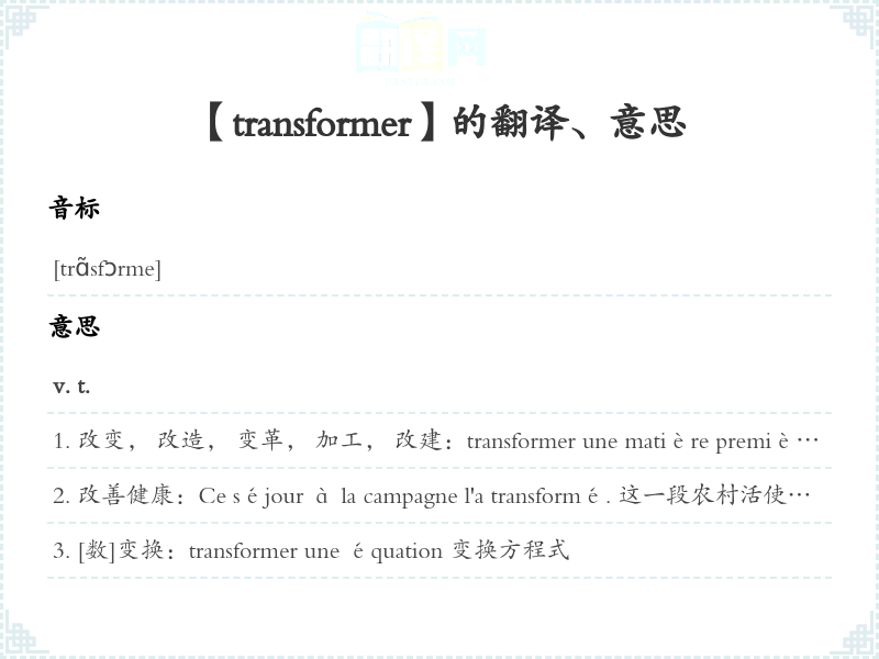 【transformer】是什么意思、字义解释
