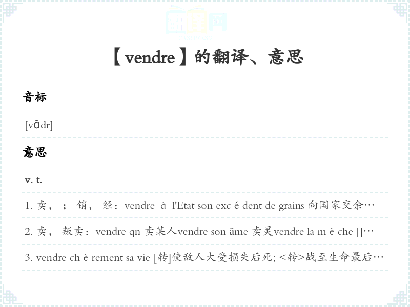 【vendre】是什么意思、字义解释