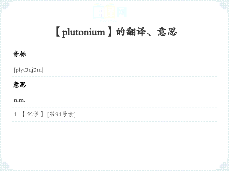 【plutonium】是什么意思、字义解释