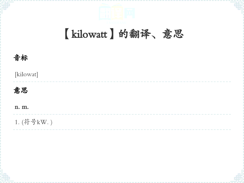 【kilowatt】是什么意思、字义解释