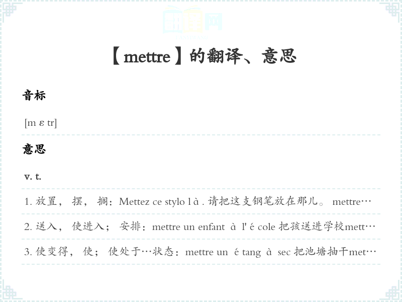 【mettre】是什么意思、字义解释