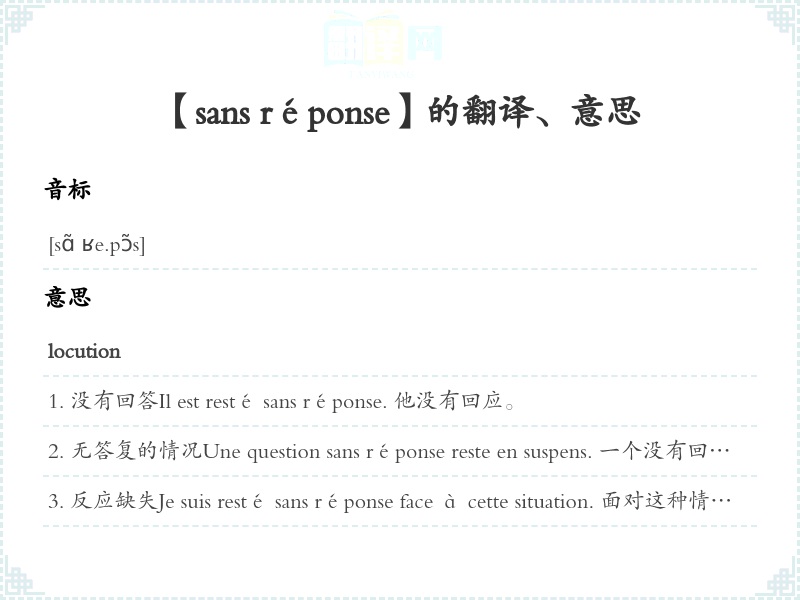 1.réponse n.f. (回答);répondre v. (回答);sans (没有)