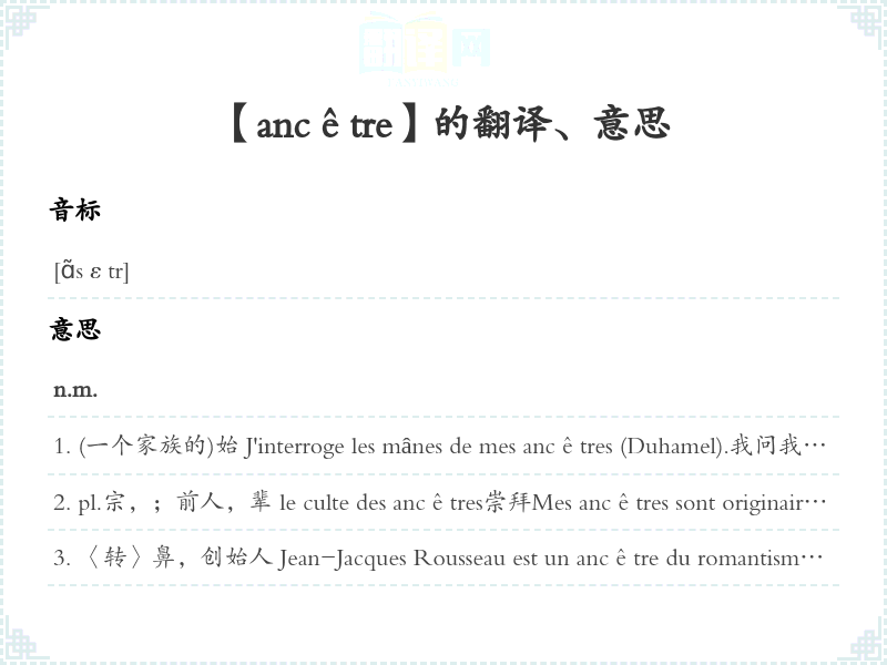 【ancêtre】是什么意思、字义解释
