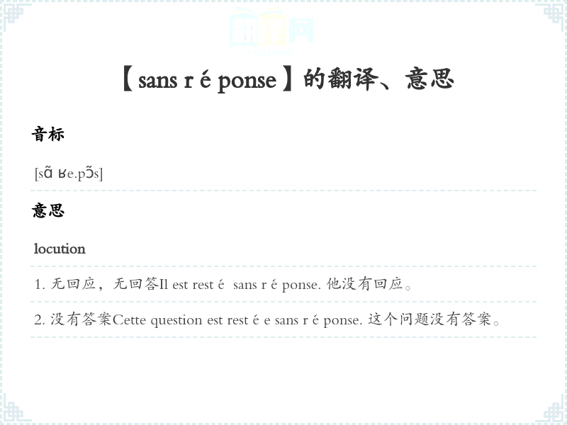 无回应,无回答Il est resté sans réponse. 他没有回应。
