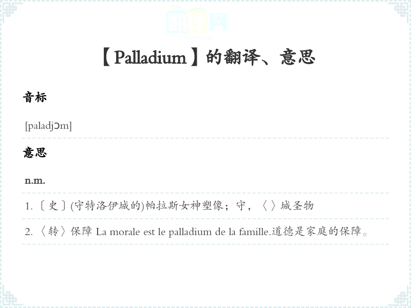 〈转〉保障 La morale est le palladium de la famille.道德是家庭的保障。
