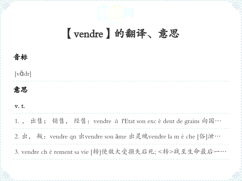 【vendre】是什么意思、字义解释