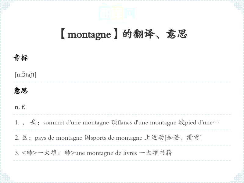 【montagne】 联想:、 近义词:、 反义词: 联想词