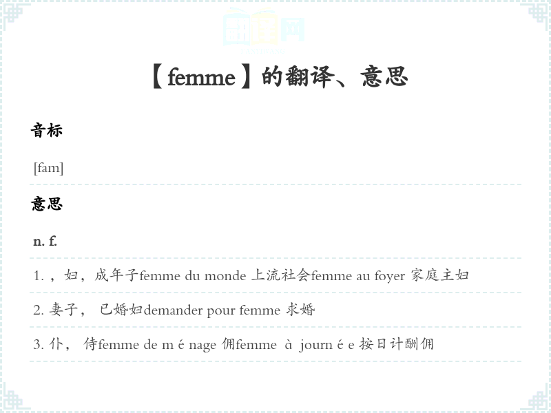 【femme】是什么意思、字义解释