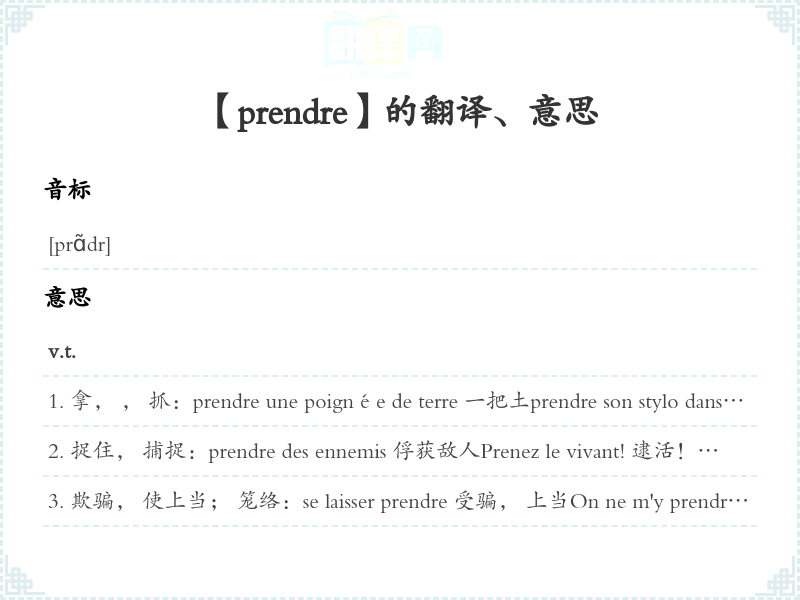 【prendre】是什么意思、字义解释